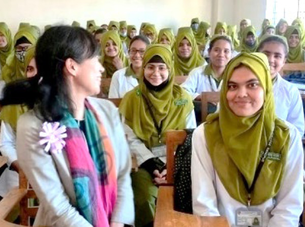 1971年の独立の際、バングラデシュの国旗は日本をまね、緑の背景に赤い日の丸を配置したという話は有名ですが、実際バングラデシュの人は「緑」を愛しています。看護学生、そしてナースの制服は白衣ならず一律「緑衣」です(写真①)。