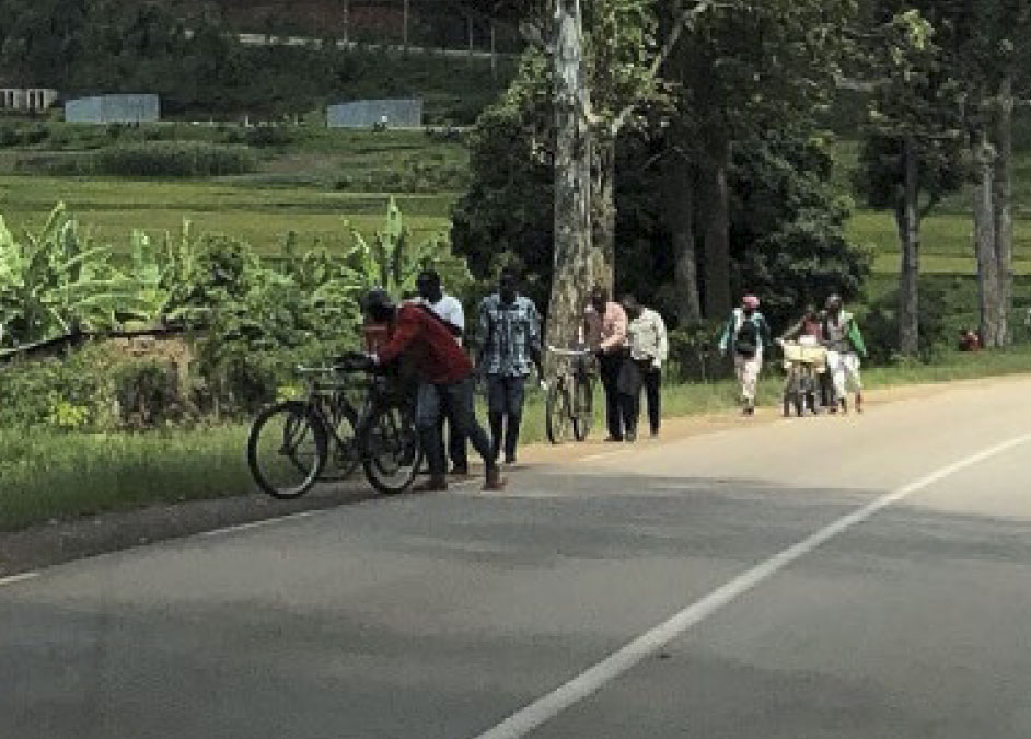 そんな道路環境でありますが、小規模農業者の輸送手段のメインは、いまだに自転車になっています。その家計を支える自転車は、昭和のお父さんが乗っていた頑丈な自転車(中国製)。その自転車に詰めるだけ荷物を搭載して、最大限の荷物を一度で輸送できるよう頑張っています。家計を支える自転車を乗りこなすエースは、お父さんだったり、お兄さんだったりと男性が担っています。エチオピアでよく目にした輸送手段に使われているロバ。ロバのそばには女性か子供が多かったのと大違いのルワンダです。