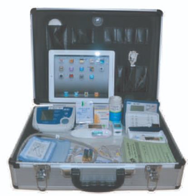 今回のイベントで特に印象に残ったのが「PHC基本パッケージ」の存在です。これは、ひとつのカバンに健康測定機器やタブレットがギュッと詰め込まれたセットで、これさえ持っていけば村のどこででも健診ができます。ちなみに、1ケース500ドル。(モバイル超音波などオプション有)測定データはその場でスマホやタブレットからクラウドにアップロードされて、医師が遠隔から診断してくれるというしくみには本当に驚かされました。現場のヘルスワーカーは、特別な資格がなくても数日の研修で使えるようになるそうで、「これぞ現場に根差したDX!」と思いました。